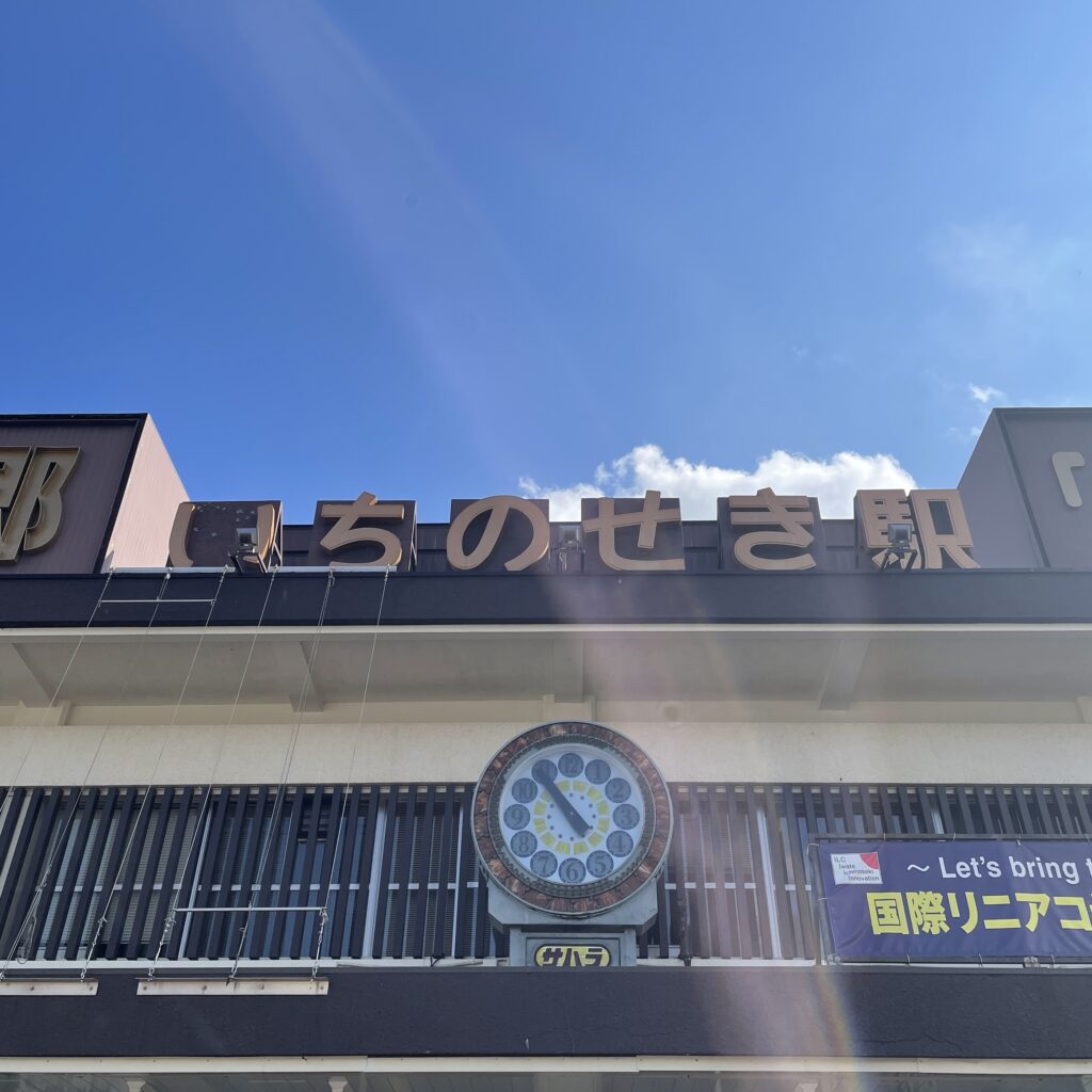 かわいい駅名のついた一ノ関駅に到着。ここからバスに乗車して「空飛ぶだんご」で有名な厳美渓へ向かいます。駅前のバスロータリーから厳美渓行のバスが出ているので、そこからバスに乗って20分ほどで厳美渓へ到着します。