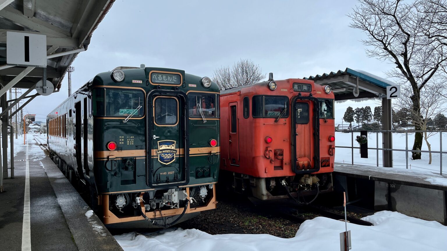 城端駅では高岡へ向かう城端線とべるもんたが並んでいて、写真映えしていました!
