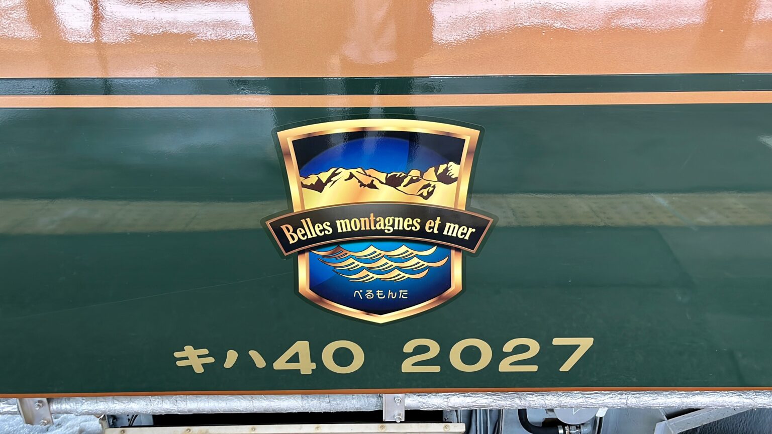 べるもんたとは、ベル・モンターニュ・エ・メールから取った愛称で、フランス語で「美しい山と海」という意味があります。車体も濃い緑色に金の縁取りといった豪華な塗装となっています。